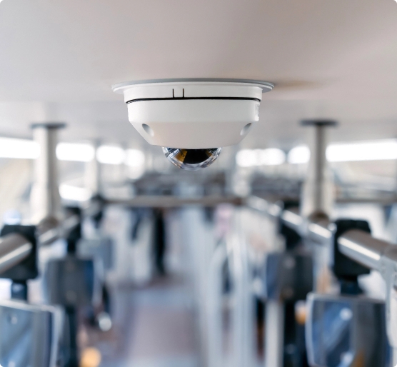 Sistema de videovigilancia para la mejora de la seguridad y experiencia de los pasajeros y personal a bordo. El sistema graba, analiza y permite visualizar en tiempo real las imágenes captadas por el conjunto de cámaras dentro del tren (cámaras de sala, retrovisoras y frontales).